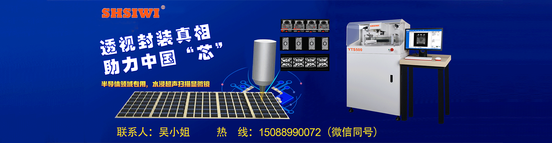 公司為客戶提供超聲檢測設(shè)備、檢測標(biāo)準(zhǔn)及檢測服務(wù)系統(tǒng)解決方案。已形成DXS800、DXS810大型機(jī)、GSS700、GSS600、300、301、310高速機(jī)、YTS500、YTS510、YTS520、YTS530、YTS540小型一體機(jī)、ZMS400桌面機(jī)等系列產(chǎn)品線,可以滿足半導(dǎo)體封裝測試、水冷板散熱器檢測、金剛石缺陷和厚度測量、低壓電器焊接質(zhì)量檢測、復(fù)合材料、鋰電池、晶圓鍵合等行業(yè)需求。